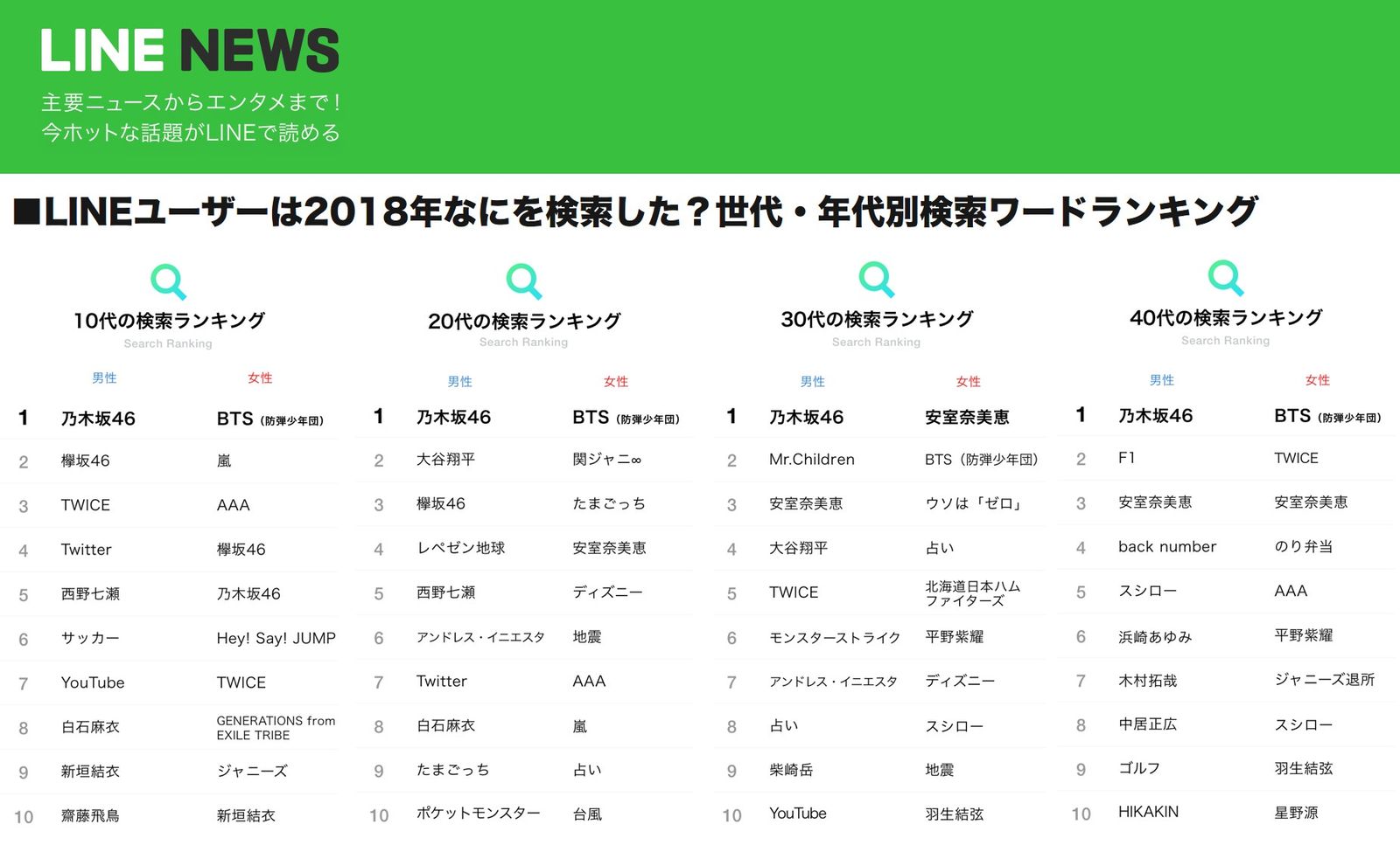 男は10~40代全部乃木坂、しかも白石、西野、飛鳥の個々のメンバーまで入ってる