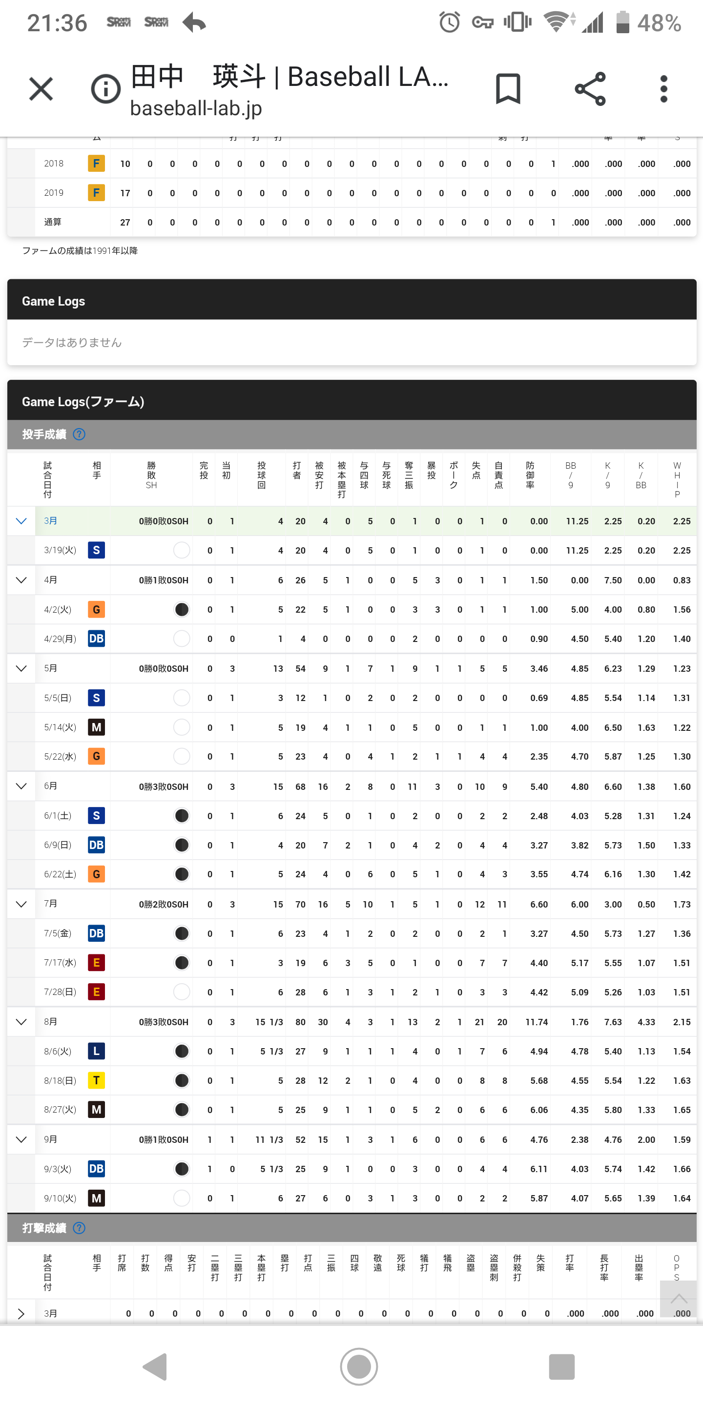 でも田中はコントロール悪くて試合を作れないことが大半なのと変化球の精度が低すぎて打者を抑えられるかどうか丁半博打みたいなもんだからな