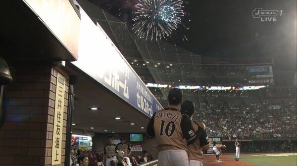 清宮は「まさかのケンシさんと花火見るとは…変な絆ができちゃいました」と笑顔。「でも本当にキレイで、至れり尽くせりで名護の方に感謝です。2人で75本塁打?」と言うと、すかさず杉谷は「そうそう、オレが3本として…って72本じゃねーか!」とノリツッコミを披露していた。