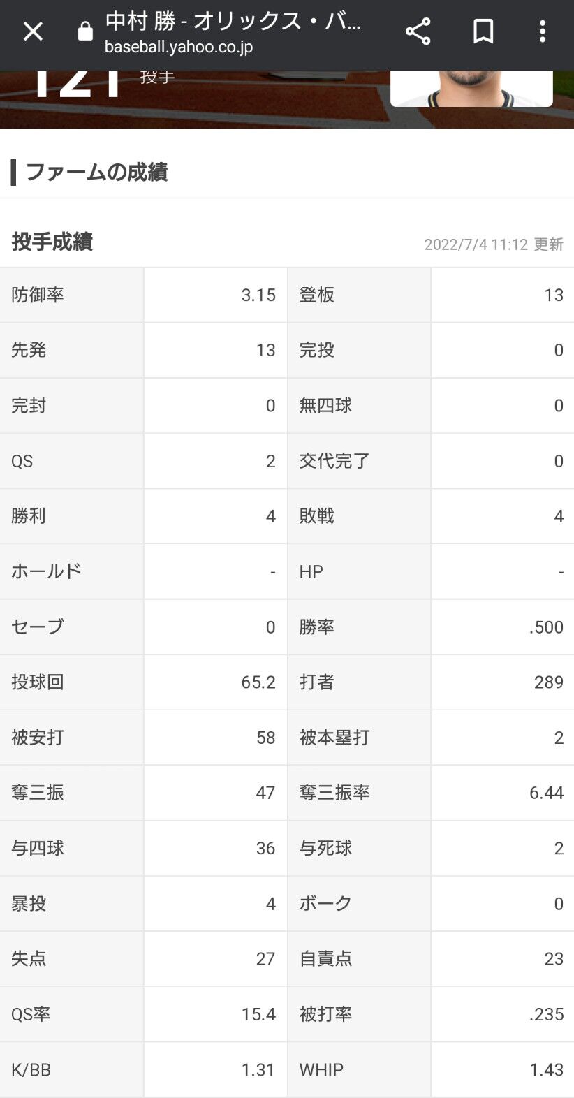 フォームや端正な顔立ちから春日部共栄高時代に“埼玉のダルビッシュ”と呼ばれた30歳の右腕。通算15勝を挙げた日本ハムから19年に戦力外通告を受け、昨年はメキシカンリーグでプレー。今年2月のキャンプでの入団テストに合格し、3月1日に育成契約を結んだ。ウエスタン・リーグでは先発の一角を担って13試合4勝4敗、防御率3・15。2日の阪神戦(甲子園)でも6回途中2失点と粘り、先発、ロングリリーフ要員として戦力になると判断されたもようだ。
