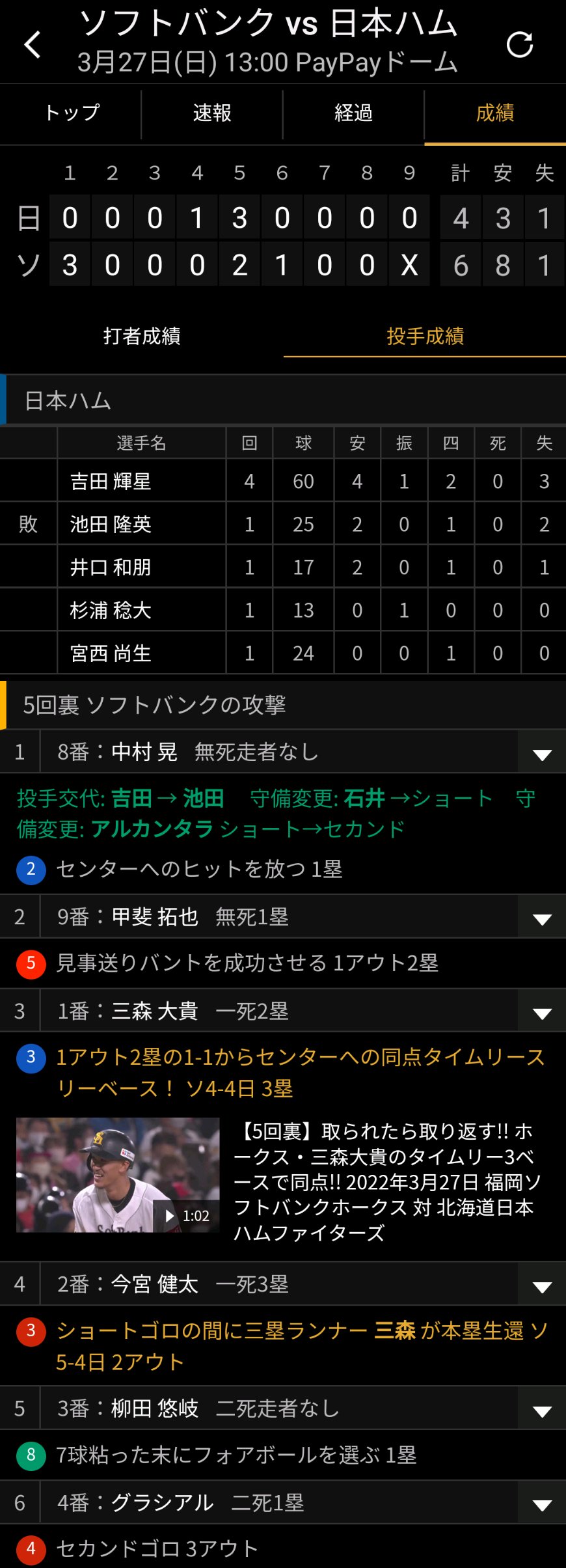 西村天裕(F)https://t.co/5mKOaPg6dX#NPB
