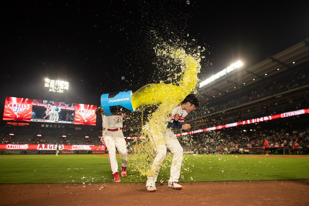 インタビュアーの姉ちゃんは大谷と向かい合う形で話を聞くから