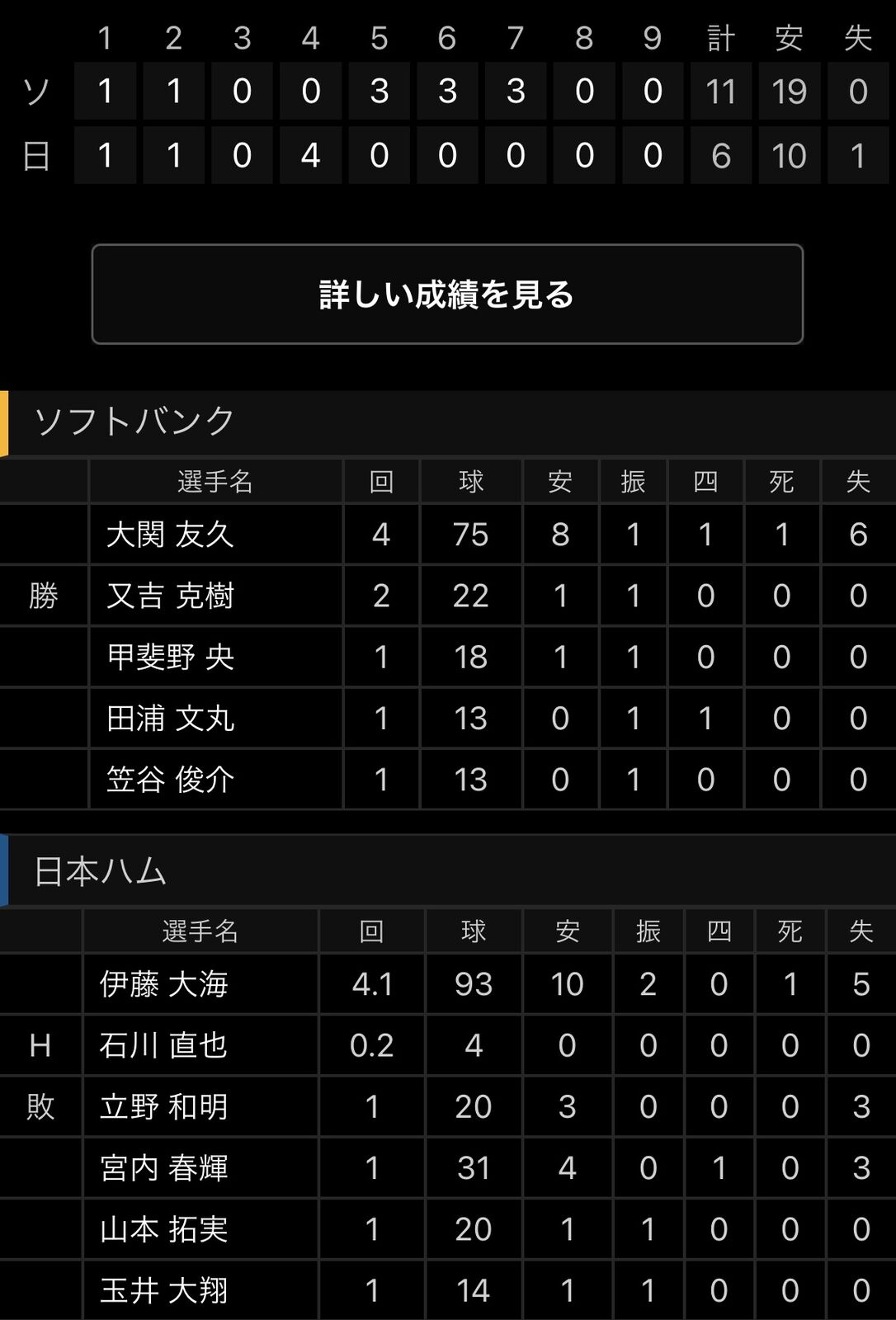 不調のSBにとってはハム様々だね