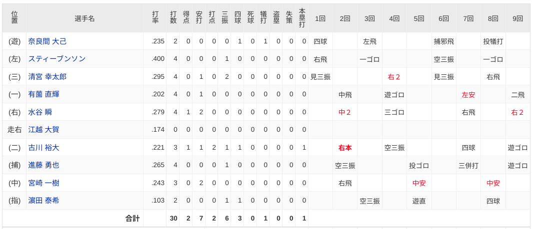 福島は今日の投球内容を見ても、まだまだ一軍の先発投手としては課題が残る感じなので、しばらく鎌ケ谷でレベルアップを図ってほしいかな。