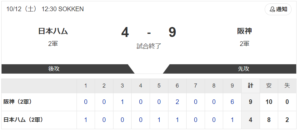 【フェニックスL 日本ハムvs.阪神】4-9で敗北 2024/10/12 カテゴリ:鎌ケ谷ファイターズ試合結果 4コメント 「鎌ケ谷ファイターズ」の関連記事 「試合結果」の関連記事 タグ :#試合結果 < 前の記事次の記事 > 1 名無しの国民 2024/10/12 16:26 id:I2ANsk4U0 達は2回だけなのか 2 名無しの国民 2024/10/12 17:05 id:i7A5XT4y0 収穫なし 3 名無しの国民 2024/10/12 18:10 id:3zwNgueH0 >>2 ありまくりだったよ 4 名無しの国民 2024/10/12 21:04 id:JEtBqCdb0 達は怪我か何か?調べても情報が出てこない。 コメントフォーム 名前 コメント 記事の評価 リセット リセット 顔 星 情報を記憶 コメントを投稿する