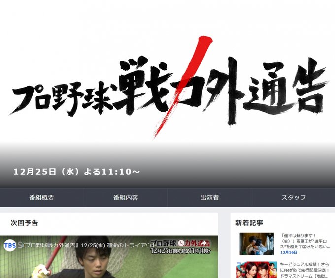 TBS『プロ野球戦力外通告』12・25放送決定 21回目の今年は“常総のバレンティン”らに密着 予告動画も公開
