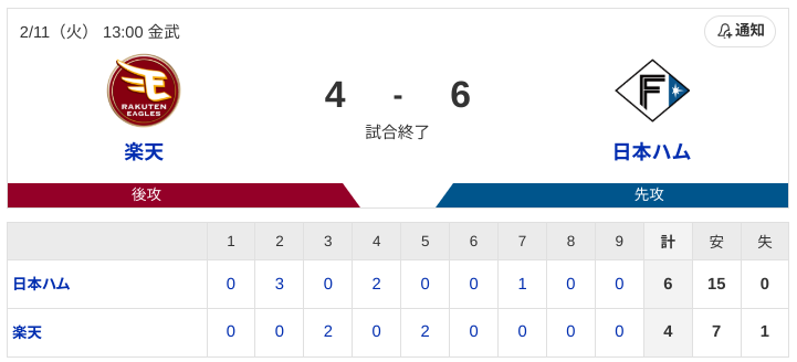 今日は楽天の活きが良い若手を見られたから今度はこっちの若手組が大暴れしてきてほしいね