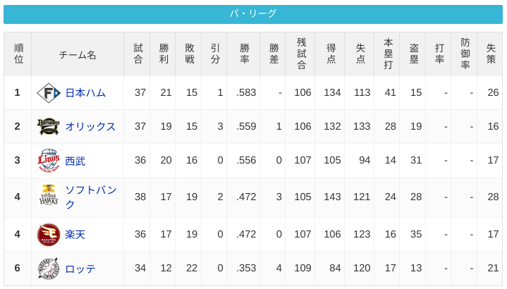 西武も迫ってきてるのが不気味だな https://t.co/B2F1mehQmm