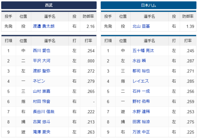 初戦今日とこの試合展開できてて明日のマッチアップの対戦防御率で西武が勝つ可能性高いと思う理由がわからん