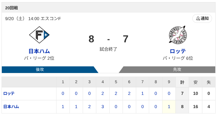 ハムが勝ってソフバンが負けるの久々やね