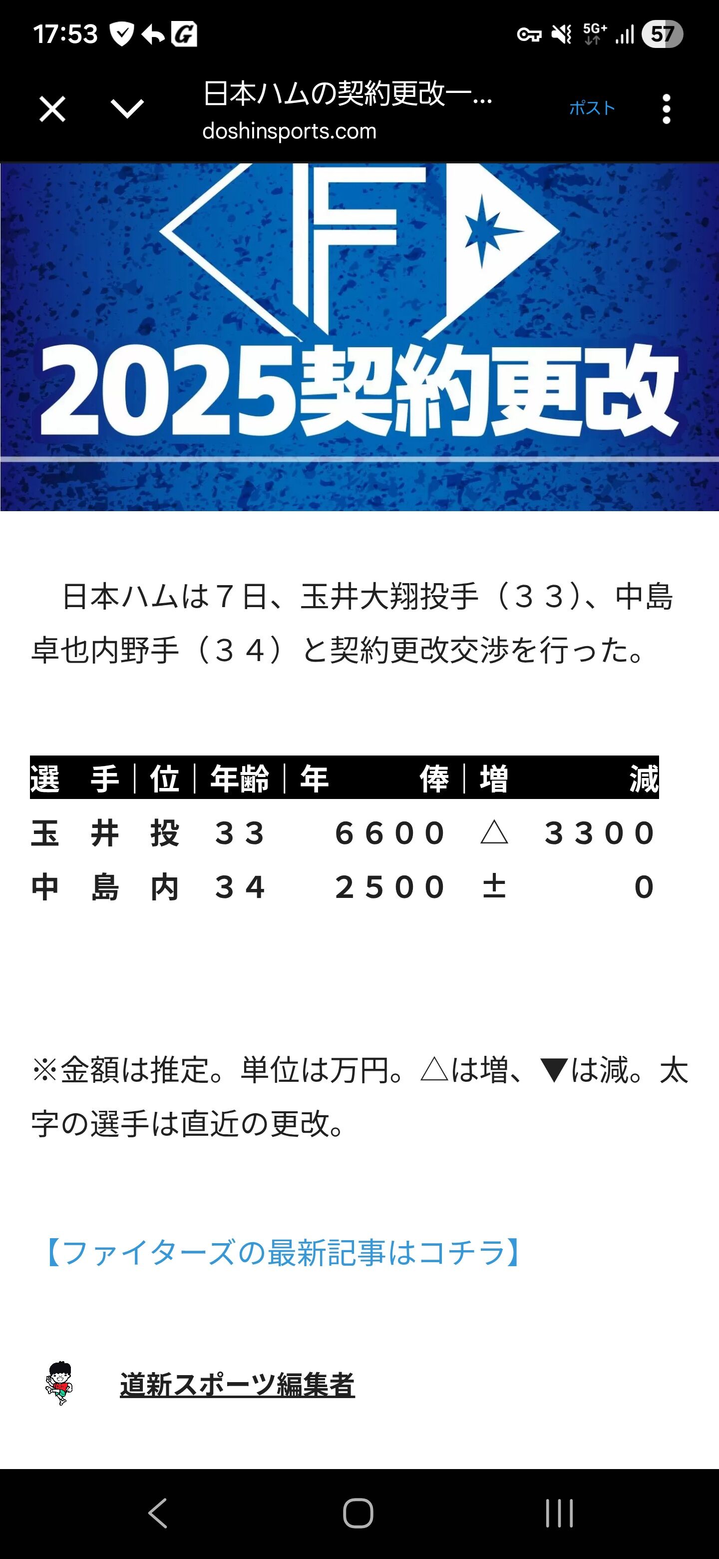 ハムは今週から契約更改スタートか