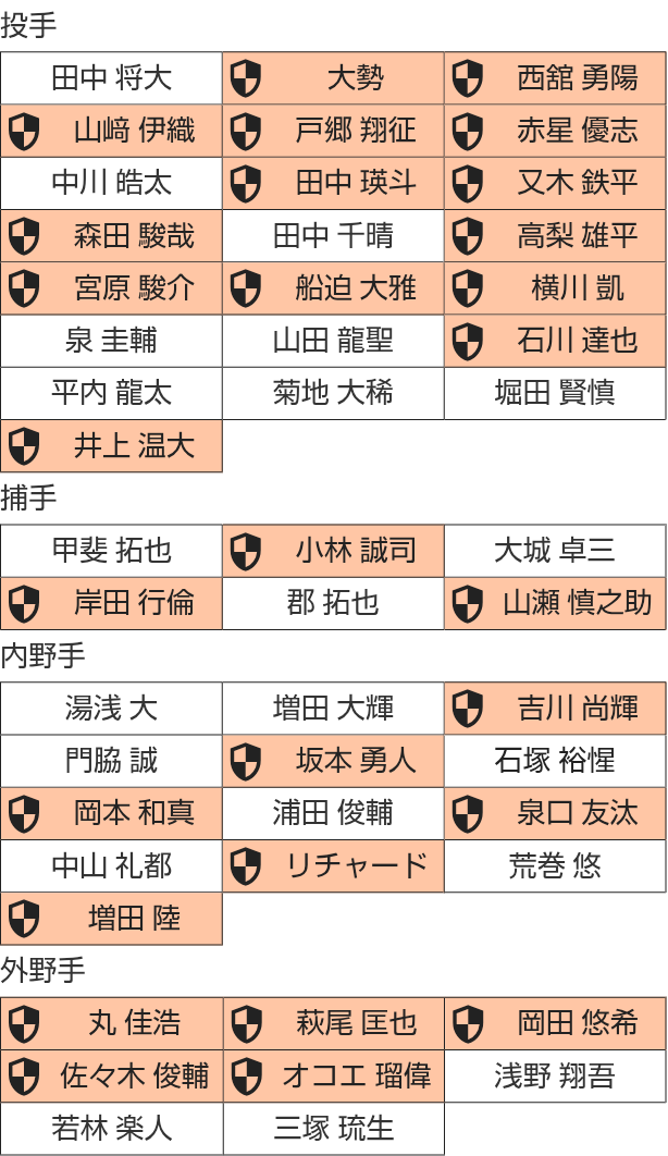だから、田中マー、坂本、甲斐、小林、大城、岡本、丸はプロテクトから外れるよ