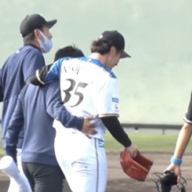 【悲報】日ハム西村、左膝に打球が直撃し初回わずか1球で負傷降板…