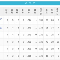 【4/7】パ・リーグ順位表|今季初の完封負け…日ハムの現在順位がこちら