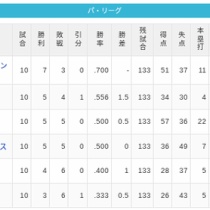 【4/10】パ・リーグ順位表|本日はお休み…日ハムの現在順位がこちら